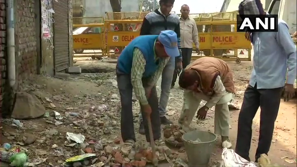 दिल्ली: नगर निगम कर्मियों ने शुक्रवार की नमाज से पहले बाबरपुर इलाके के कबीर नगर में सड़कों की सफाई की।