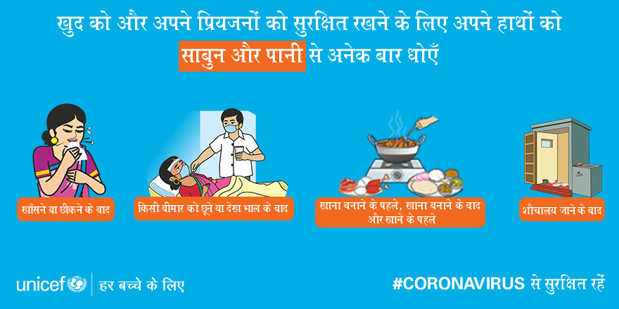 यूनिसेफ : आप कितनी भी कोशिश कर लें, किटाणु आपको आँखों से नहीं दिखेगा अपने प्रियजनों को संक्रमित होने से बचाने के लिए अपने हाथों को साबुन और पानी से अनेक बार धोएँ। अपने परिवार और मित्रों को सुरक्षित रखने के लिए इस संदेश को शेयर करें ।