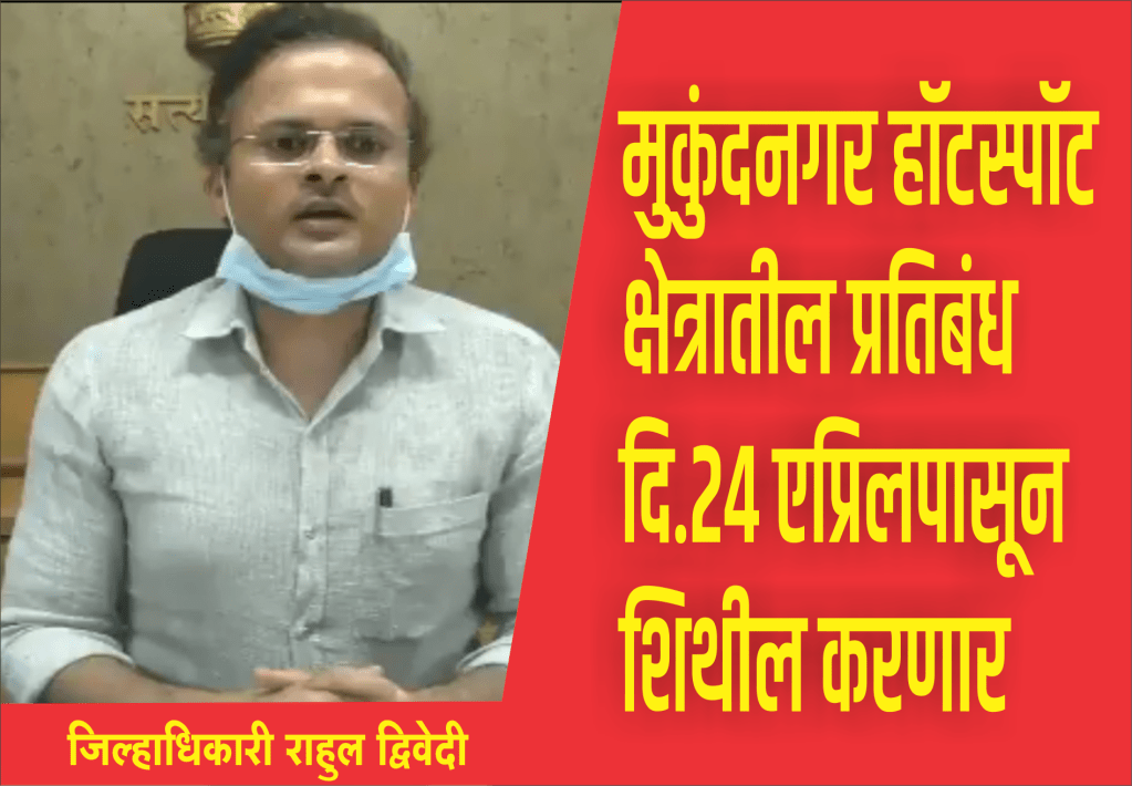 नवीन #कोरोना रुग्ण न आढळल्यास #अहमदनगर शहरातील मुकुंदनगर हॉटस्पॉट क्षेत्रातील प्रतिबंध दि.२४ एप्रिलपासून शिथील करणार. अत्यावश्यक किराणा (स.९ ते दु.३ वाजेपर्यंत) आणि मेडिकल स्टोअर्स सुरू राहतील. नागरिकांनी एकाच वेळी गर्दी करू नये. सहकार्य करावे. जिल्हाधिकारी @_Rahuld यांचे आवाहन
