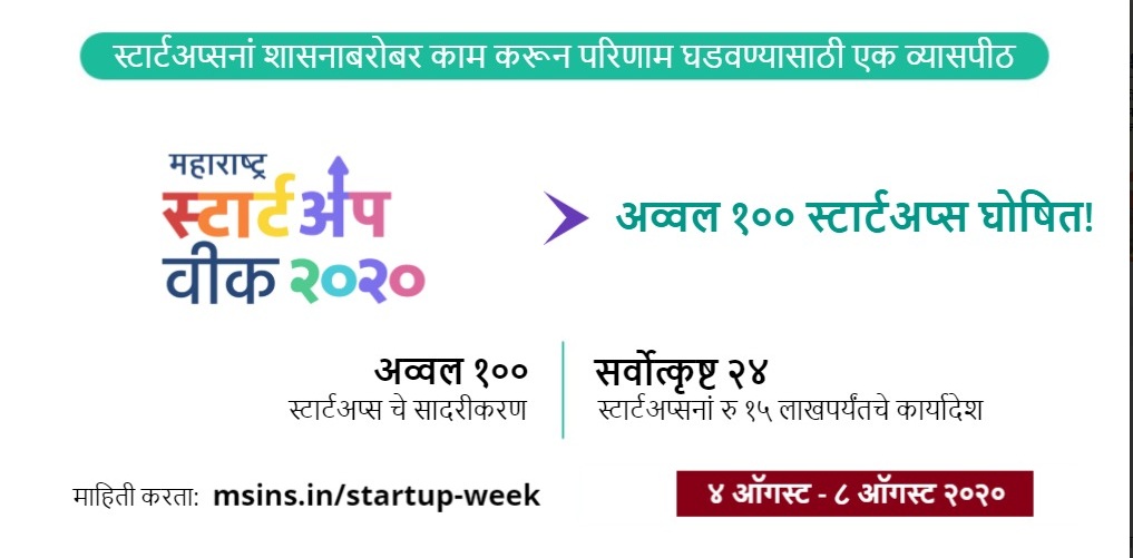 निवड झालेल्या १०० स्टार्टअप्सची माहिती www.msins.in या संकेतस्थळावर उपलब्ध आहे. ४ ऑगस्ट ते ८ ऑगस्ट २०२० दरम्यान होणाऱ्या महाराष्ट्र स्टार्टअप सप्ताहात या स्टार्टअप्सचे सादरीकरण केले जाणार आहे. स्टार्टअप्सना त्यांची नाविन्यपूर्ण उत्पादने, सेवा यांचे सादरीकरण वरिष्ठ शासकीय अधिकारी, गुंतवणूकदार, तज्ज्ञ यांच्या समितींसमोर करण्याची संधी मिळणार आहे. सद्यस्थितीत कोरोनाच्या पार्श्वभूमीवर सर्व सादरीकरणसत्रे ऑनलाईन घेण्यात येणार आहेत. त्यातील उत्कृष्ट २४ स्टार्टअप्सची निवड करुन त्यांना प्रत्येकी १५ लाख रुपयांपर्यंतचे विविध शासकीय कामाचे कार्यादेश देण्यात येतील. त्यांची नाविन्यपूर्ण उत्पादने, सेवा संबंधित शासकीय विभागांमध्ये प्रायोगिक तत्त्वावर राबविण्यासाठी हे कार्यादेश देण्यात येतील, अशी घोषणाही मंत्री श्री. मलिक यांनी केली.