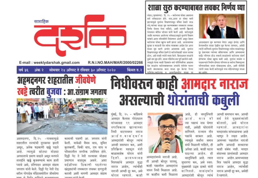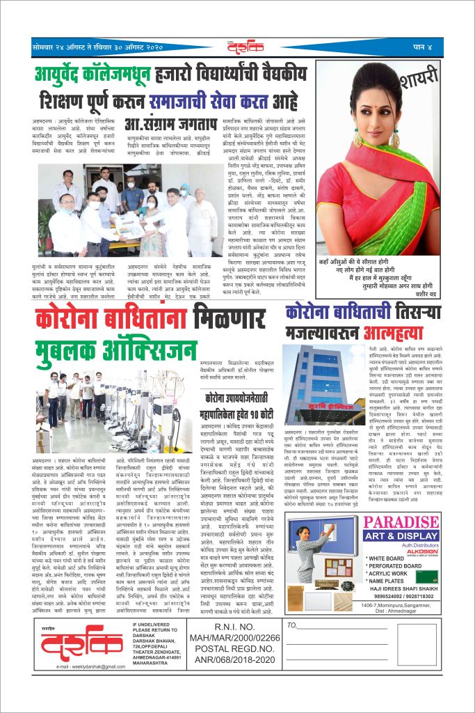 #AMC, #Darshak, AHMEDNAGAR, MAHARASHTRA #DARSHAK #Ahmednagar Darshak News Paper Date: August 26, 2020Author: Darshak 0 Comments Front Page DARSHAK Page No 2 DARSHAK Page No 3 DARSHAK Page No 4 DARSHAK darshak-newspaper PDFDownload Share this: Share on X (Opens in new window) X Share on Facebook (Opens in new window) Facebook Share on WhatsApp (Opens in new window) WhatsApp Like Loading... Related