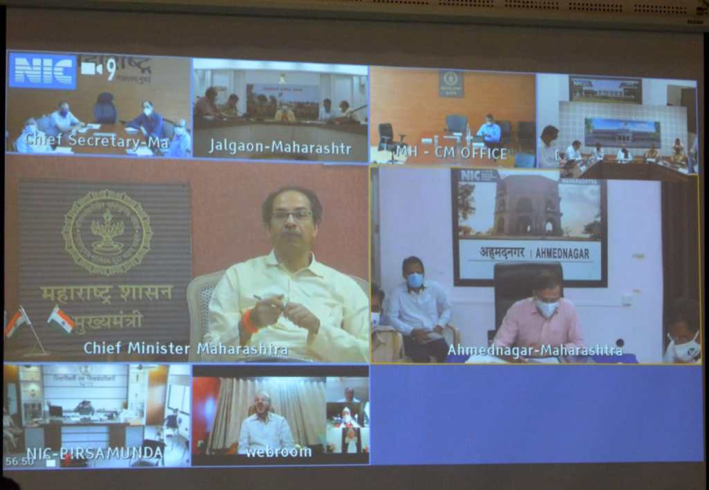 मुख्यमंत्री श्री. ठाकरे हे राज्यातील सर्व महसूल विभागनिहाय प्रत्येक जिल्ह्यातील कोरोना परिस्थिती आणि माझे कुटुंब माझी जबाबदारी मोहिमेच्या अंमलबजावणीचा आढावा घेत आहेत. श्री. ठाकरे यांनी आज दूरदृश्य प्रणालीद्वारे नाशिक विभागातील सर्व जिल्ह्यांचे पालकमंत्री व अधिकाऱ्यांशी संवाद साधला. त्यावेळी ते बोलत होते. यावेळी अहमदनगर जिल्ह्याचे पालकमंत्री हसन मुश्रीफ यांनी कोल्हापूर येथून तर अहमदनगर जिल्हाधिकारी कार्यालयातून जिल्हाधिकारी राहुल द्विवेदी, मनपा आयुक्त श्रीकांत मायकलवार, जिल्हा परिषदेचे प्र. मुख्य कार्यकारी अधिकारी जगन्नाथ भोर, अपर पोलिस अधीक्षक सागर पाटील, जिल्हा शल्यचिकित्सक डॉ. सुनील पोखरणा, जिल्हा आरोग्य अधिकारी डॉ. संदीप सांगळे, मनपा चे आरोग्य अधिकारी डॉ. अनिल बोरगे, जिल्हा साथरोग सर्वेक्षण अधिकारी डॉ. दादासाहेब साळुंखे आदी उपस्थित होते.