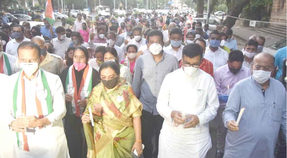 उत्तर प्रदेशातील हाथरस घटनेत मृत्यू पावलेल्या पीडितेला श्रद्धांजली वाहण्यासाठी व तिला न्याय मिळवून देण्यासाठी महाराष्ट्र प्रदेश काँग्रेस कमिटीचे अध्यक्ष बाळासाहेब थोरात यांच्या नेतृत्वाखाली मंत्रालयाजवळील डॉ. बाबासाहेब आंबेडकर यांचा पुतळा ते एशियाटिक लायब्ररी असा संवेदना कँडल मार्च’ काढण्यात आला होता. या मार्चमध्ये थोरात यांच्याबरोबर महिला व बाल विकास मंत्री यशोमती ठाकूर, आमदार भाई जगताप, माजी आमदार मोहन जोशी, अनुसूचित जाती विभागाचे राष्ट्रीय समन्वयक रवींद्र दळवी, प्रदेश उपाध्यक्ष सुभाष कानडे, सरचिटणीस राजेश शर्मा, प्रकाश सोनावणे, सचिव राजाराम देशमुख यांच्यासह शेकडो काँग्रेस कार्यकर्ते सुरक्षित अंतर पाळून या संवेदना कँडल मार्चमध्ये सहभागी झाले होते. कँडल मार्च एशियाटीक लायब्ररी येथे पोहोचल्यावर पीडितेला श्रद्धांजली अर्पण करण्यात आली.