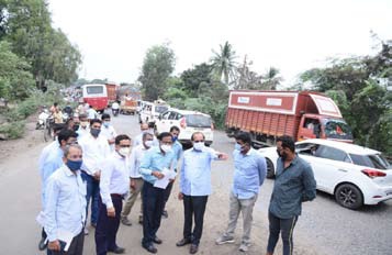 आ.राधाकृष्ण विखे पाटील यांनी नगर मनमाड रस्त्याच्या निर्माण झालेल्या परिस्थितीची पाहणी करून या मार्गाचे काम तातडीने सुरू होण्याबाबत अधिकार्यांसमवेत बैठक घेतली.यापुर्वी या मार्गावरील परिस्थितीचे गांभीर्य त्यांनी सार्वजनिक बांधकाममंत्री अशोक चव्हाण यांच्या निदर्शनास आणून दिले होते. या रस्त्याच्या तात्पुरत्या दुरुस्तीसाठी 40 कोटी रूपये उपलब्ध करुन देण्याचे ओशासन आ.विखे पाटील यांना देण्यात आले होते.