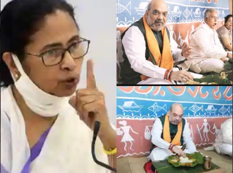 ममता बॅनर्जी यांनी वृत्तसंस्थेला दिलेल्या माहितीनुसार, बांकुडा जिल्ह्यात आदिवासी कुटुंबाच्या घरी अमित शाह यांनी पाहुणचार घेणे हे केवळ नाटक होते. अमित शाह यांच्यासाठी बनवलेले जेवण हे फाइव्ह स्टार हॉटेलमधून मागवण्यात आले होते असा गंभीर आरोप बॅनर्जी यांनी केले आहेत.
