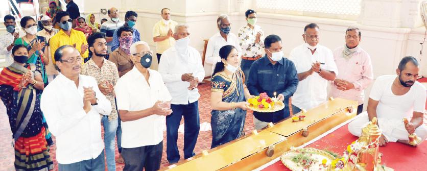 अहमदनगर (दि २ डिसेंबर २०२०) : एखाद्या शहराची ओळख तेथील सोयी सुविधा, रचनात्मक कामे,स्वच्छता, सुशोभिकरणाबरोबरच तेथील धार्मिक स्थळांमुळे शहराच्या वैभवात भर पडत असते. नगर शहराचे ग्रामदैवत असलेले श्री विशाल गणेश मंदिर हे भाविकांचे श्रद्धास्थान आहे.मंदिराचा झालेला जिर्णोद्धार हा कौतुकास्पद असाच आहे.कोरोनाच्या पार्श्वभूमीवर मंदिर बंद होती आता ती सुरु झाली आहेत. त्यामुळे धार्मिक स्थळांची व्यवस्था व सुविधांही चांगल्या पद्धतीची असणे गरजचे आहे.श्रीविशाल गणेश मंदिराच्यावतीने भाविकांच्या सुरक्षिततेसाठी राबविण्यात येत असलेले उपक्रम समाधानकारक आहेत, असे प्रतिपादन मनपाचे आयुक्त श्रीकांत मायकलवार यांनी केले.शहराचे ग्रामदैवत श्री विशाल गणेश मंदिरास मनपा आयुक्त श्रीकांत मायकलवार यांनी भेट दिली असता, त्यांच्या हस्ते सपत्नीक आरती करण्यात आली. याप्रसंगी पंडितरावखरपुडे यांनी मंदिराच्यावतीने राबविण्यात येत असलेल्या विविध उपक्रमांची माहिती दिली. त्याचबरोबरच मंदिरे खुली झाल्यानंतर शासनाच्यावतीने निर्देशित करण्यात आलेल्या सूचनांचे काटेकोरपणे पालन करण्यात येत आहे,त्याच बरोबर भाविकांना मास्क,सॅनिटायझर, सोशल डिस्टसिंगच्या सूचना देऊन त्यासाठी स्वतंत्र्य व्यवस्था करण्यात आली असल्याचे सांगितले. देवस्थानचे सचिव अशोकराव कानडे यांनी जिर्णोद्धाराच्या कामाची माहिती दिली. यावेळी देवस्थानाच्यावतीने त्यांचा सपत्नीक सत्कार करण्यात आला.