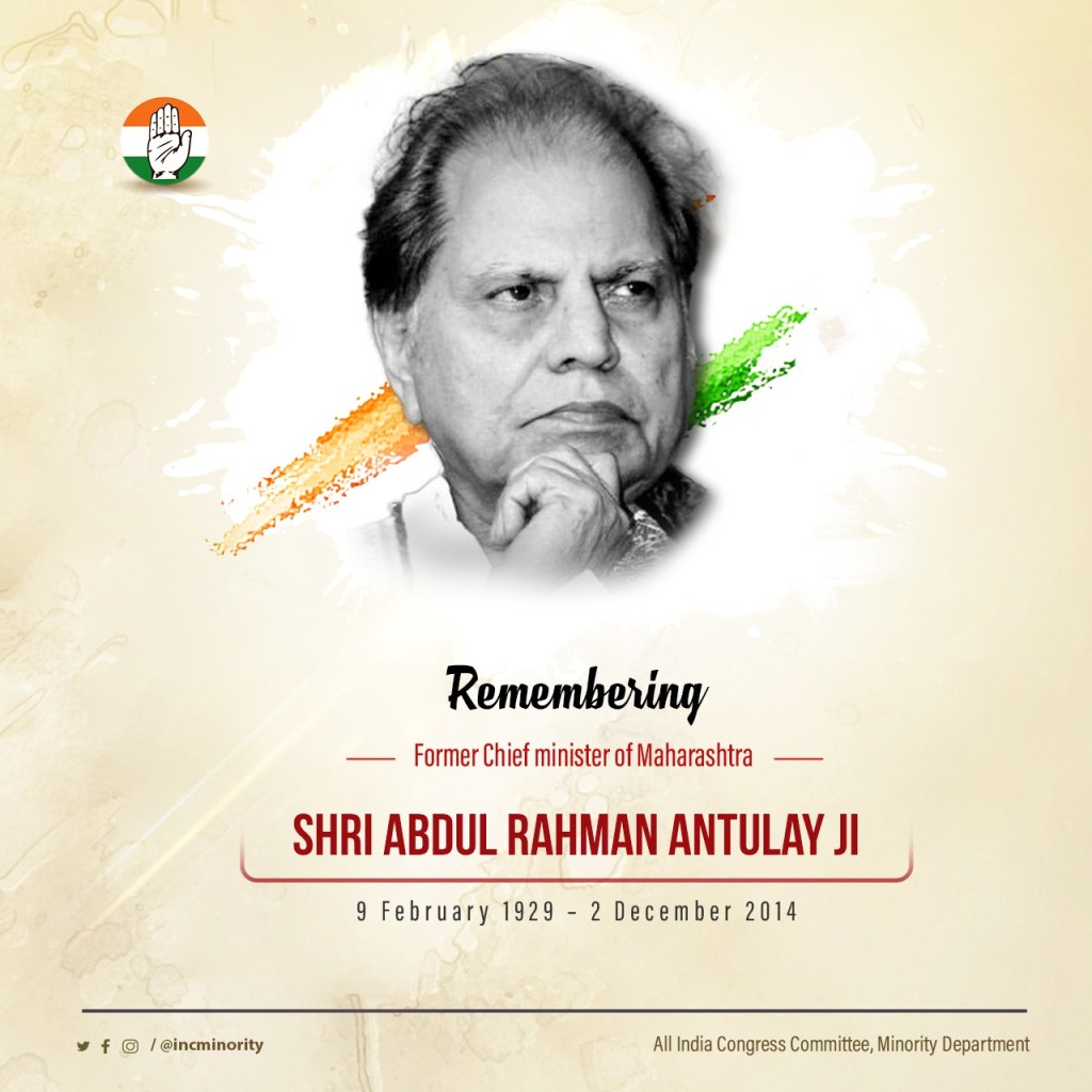 सहावी पुण्यतिथी निमित्ताने काही आठवणी सन१९८० जनता पार्टीचे सरकार जावुन पुन्हा कॉंग्रेस चे सरकार सत्तेवर आले.तदनंतर महाराष्ट्रात मुख्यमंत्री पदी बॅरिस्टर ए.आर.अंतुले यांची निवड झाली.अन महाराष्ट्रात आधुनिकतेची क्रांती आली, कॉंग्रेस आयचे संस्थापक सदस्य होते.त्यावेळी महाराष्ट्रात आय कॉंग्रेसला प्रेमानं आई कॉंग्रेस म्हणत होते. बॅरिस्टर ए.आर.अंतुले यांनी आपल्या १९महिण्याच्या कारकिर्दीत अनेक धडाडीचे निर्णय घेतले,ते सर्व जनतेच्या हिताचे होते.त्यांना गोरगरीब जनतेबद्दल खुपच आपुलकी होती.त्यांनी गोरगरीब विधवा महिलांसाठी संजय गांधी निराधार योजना व संजय गांधी स्वावलंब योजना सुरू केली.