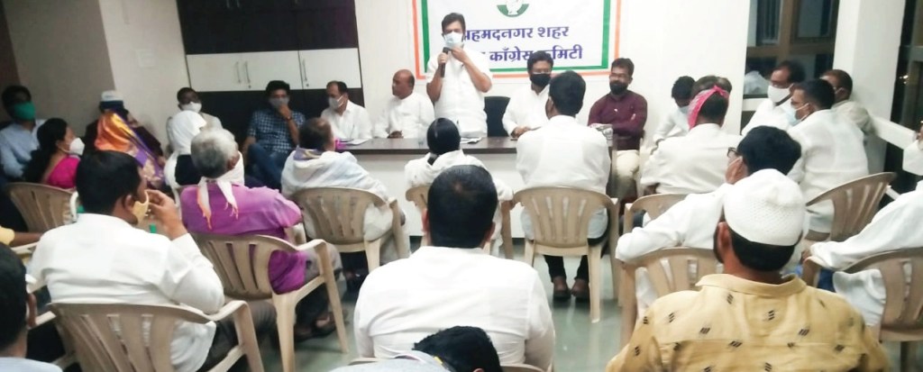 अहमदनगर (दि ३ डिसेंबर २०२०) : शहरामध्ये काँग्रेस पक्षाचा झपाट्याने विस्तार होत आहे.नवीन चेहरे पक्षाच्या प्रवाहात येत आहेत. काँग्रेस हा सर्वसमावेशक विचारधारा असणारा पक्ष आहे.शहरात काँग्रेस पक्षाची वाढ होत आहे, ही बाब समाधानकारक आहे, असे प्रतिपादन काँग्रेसचे आ.डॉ. सुधीर तांबे यांनी केले आहे. शहर जिल्हा काँग्रेसची संघटनात्मक आढावा बैठक पक्ष कार्यालयात पार पडली.यावेळी आ. तांबे बोलत होते.कार्यक्रमाच्या अध्यक्षस्थानी शहर जिल्हाध्यक्ष किरण काळे होते.