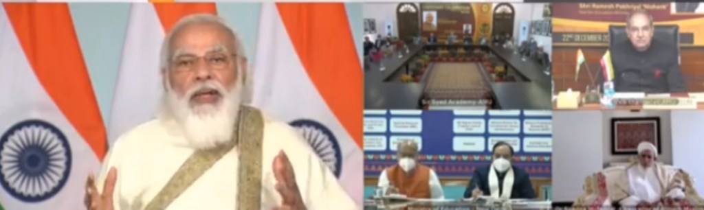 नरेंद्र मोदी म्हणाले “एएमयूमध्ये उर्दू, फारसी आणि संस्कृत,अरबी भाषेवर संशोधन केले जाते हे कौतुकास्पद आहे