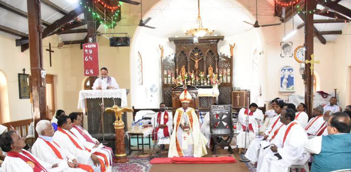 अहमदनगर दि. 25 -तारकपूर येथील सेंट सेव्हिअर्स चर्चमध्ये नुकताच धर्मगुरु (प्रिस्ट) या पदाचा दिक्षा विधी मोठ्या उत्साहात व धार्मिक वातावरणात पार पडला. यावेळी ख्रिस्त बांधवांनी सोशल डिस्टसिंग पाळत कार्यक्रमाचा लाभ घेतला. चर्च ऑफ नॉर्थ इंडियाचे पंचांगानुसार पवित्र आगमन समयामध्ये नाताळ सणाचे औचित्य साधून धर्मगुरु (प्रिस्ट) या पदाच्या दिक्षेचे आयोजन सेंट सेव्हिअर्स कॅथेडूल चर्चमध्ये करण्यात आले होते. बिशप ऑफ मराठवाडा तथा नाशिक धर्मप्रांताचे मॉडरेटर्स एपिस्कोपल कॉमीसरी रा.रेव्ह.एम.यु. कसाब यांच्या हस्ते डिकन रवि चांदेकर ,डिकन सतिश तोरणे व डिकन अमोल तोरडे यांना रेव्हरंड पदाची दिक्षा देण्यात आली. दिक्षा विधी करिता पुणे धर्मप्रांताचे बिशप रा. रेव्ह. पॉल दुपारे यांनी प्रवचनातून दिक्षार्थी व उपस्थितांना मार्गदर्शन केले.यावेळी बोलताना ते म्हणाले की, चर्च ऑफ नार्थ इंडियाला दिक्षा विधीचा हा ऐतिहासिक वारसा आहे. नाशिक धर्मप्रांताचे सेंट सेव्हिअर्स कॅथेडूल हया ठिकाणी बिशपांच्या गादीचा वारसा आहे. तसेच दिक्षार्थींच्या हाती सोपविला जाणारा खजिना म्हणजे ख्रिस्ताचा कळप अर्थात खरिस्तमंडळी होय, ह्या मंडळीचे दिक्षार्थी मेंढपाळ झालेले असून ह्या मंडळीची म्हणजे समाजातील दिन दुबळे, गरजवंत, निराश्रित ह्यांची सेवा करावयाची आहे, जन सेवा हिच खरी ईेशरसेवा असल्याचे त्यांनी म्हंटले आहे.या दिक्षाविधीचे आयोजन चर्चचे प्रिस्ट इन चार्ज रेव्ह.डि. डि. सोनावणे यांनी केले होते. सदर दिक्षा विधी करिता नाशिक धर्मप्रांताचे उपाध्यक्ष रे. अनंत आपटे, धर्मप्रांताचे सचिव रेव्ह.संदिप वाघमारे तसेच नाशिक व अहमदनगर जिल्हयामधील आचार्य व कार्यकारिणी सदस्य मोठया संख्येने उपस्थित होते. तसेच दिक्षा विधीचे सर्व नियोजन चर्चचे सचिव प्रशांत सुरेश पगारे, खजिनदार, श्रीमती मायाताई जाधव, पास्टोरेट कमिटी मेंबर किरण चार्लस मते, जेम्स पटेकर, लाजरस पवार, सरोज साळवे, सिसिल भकत, राहुल पाटोळे, लाजरस पवार, शैलाताई कांबळे, मिस. व्हिकटोरिया मते, निर्मला साठे यांचा सहभाग लाभला.