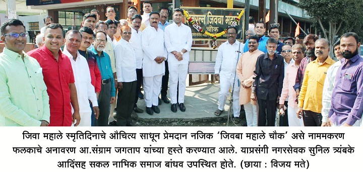 महापौर बाबासाहेब वाकळे प्रमुख पाहुणे म्हणून उपस्थित होते. सकल नाभिक समाज आयोजित जिवा महाले स्मृतिदिनाचे औचित्य साधून प्रेमदानच्या दालनात या कार्यक्रमाचे आयोजन करण्यात आले होते.आ.संग्राम जगताप पुढे म्हणाले की, छत्रपतींच्या हिंदवी स्वराज्यात बारा बलूतेदारांसह सर्वांनी एकजूट दाखवली. या मावळ्यांनी निष्ठेने पराक्रम गाजवला तशी एकजूट आपणही दाखवून सत्तेच्या माध्यमातून शहराचा विकास घडवू. महापालिकेत सत्ता बदलत असते, पण आज शहरात स्वच्छता निर्माण करण्यास कचरा घंटा गाड्यांची यंत्रणा राबविल्याने या कामात प्रगती आहे, त्याचे प्रमाणपत्र पुरस्काराच्या माध्यमातून मनपाला प्राप्त आहे.सकल नाभिक समाजाची मागणी मान्य करुन 2015 ला या चौकाचे नामकरण ‘जिवबा महाले चौक’ करण्यात आले असे सांगून यापुढे याच नावाने चौक ओळखला जावा, त्याची सुरुवात आपणच केली पाहिजे, असे आवाहन केले.