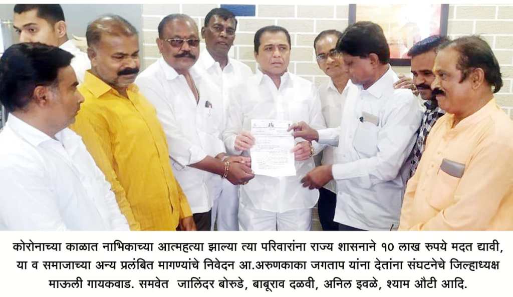 अहमदनगर (दि २८ जानेवारी २०२१) – कोरोना काळात ज्या नाभिक सलून व्यवसायिकांच्या आत्महत्या झाल्या, त्यांच्या परिवाराला राज्य शासनाने 10 लाख रुपये मदत द्यावी, यासह बारा बलुतेदार आर्थिक महामंडळाची स्थापना करुन 500 कोटींचा निधी मिळावा,समाजाचा अनुसूचित जातीत समावेश करावा आदि 7 मागण्या राज्य सरकारने मंजूर कराव्यात या मागणीचे निवेदन महाराष्ट्र नाभिक महामंडळाचे प्रांत उपाध्यक्ष व बारा बलुतेदार महासंघाचे नगर जिल्हाध्यक्ष ज्ञानेश्वर उर्फ माऊली गायकवाड यांनी आ. अरुण जगताप यांना दिले.श्री. गायकवाड यांच्या समवेत सर्वश्री राजेंद्र पडोळे, अनिल इवळे, शाम औटी, बाबूराव दळवी, जलिंदर बोरुडे, सिताराम शिंदे, स्वप्नील नांदूरकर, मनोज खोडे, नंदकुमार आहिरे, संदिप वाघमारे, बबन कुसाळकर, मल्हारी गिते, संदिप घुले, जतीकार शेलार, संजय सैंदर, गोरख ताकपेरे, राहुल महामुने, प्रमोद गुरव, बापू इंगळे, संजय औटी यांच्यसह बारा बलुतेदार महिला शाखेच्या जिल्हाध्यक्षा सौ. मनिषा गुरव आदि उपस्थित होते. या निवेदनातील प्रलंबित मागण्याबाबत आपण आमदार या नात्याने सभागृहात प्रश्न उपस्थित करुन पाठपुरावा करावा व मुख्यमंत्री उद्धव ठाकरे यांच्याकडे शिफारस करावी, अशी अपेक्षा या निवेदनाद्वारे करण्यात आली आहे. राज्यातील सर्वच आमदारांना संघटनेच्यावतीने पदाधिकार्यांनी त्या-त्या ठिकाणी निवेदन दिले आहेत. निवेदनातील प्रलंबित मागण्या – बारा बलुतेदारांच्या विकासासाठी आर्थिक विकास महामंडळ स्थापन करण्यात यावे, त्यास दरवर्षी पाचशे कोटींचा निधी उपलब्ध करुन द्यावा. कोरोना काळात आत्महत्याग्रस्त नाभिक समाज बांधवांस दहा लाख रुपये आर्थिक मदत द्यावी. 26 मार्च 1979 च्या महाराष्ट्र सरकारने केंद्र सरकारला पाठविलेल्या पत्राप्रमाणे नाभिक समाजाचा अनुसूचित जातीत समावेश करण्यासाठी राज्य सरकारने केंद्राकडे शिफारस करावी. प्रतापगडावर शुरवीर जिवबा महाले यांचे राष्ट्रीय स्मारक उभारावे व त्यासाठी निधीची तरतुद उपलब्ध करुन द्यावी. स्वातंत्र्य लढ्यातील झुंजार क्रांतीवीर विरभाई कोतवाल यांच्या नावाने बारा बलुतेदारसाठी सबलीकरण योजना राबवावी. रोहिणी आयोगाची अंलबजावणी करावी आणि नाभिक समाजाच्या सलून कारागिरास दरमहा रुपये 15 हजार निवृत्ती वेतन लागू करावी या आहेत. या प्रश्नांचा पाठपुरावा करु, असे आश्वासन आ. अरुण जगताप यांनी शिष्टमंडळाला दिले. शिष्टमंडळाने आ. संग्राम जगताप यांनाही निवेदनाची प्रत दिली आहे. त्यांनाही या निवेदनाची दखल घेऊन मुख्यमंत्र्यांकडे शिफारस करु, असे आश्वासन दिले.