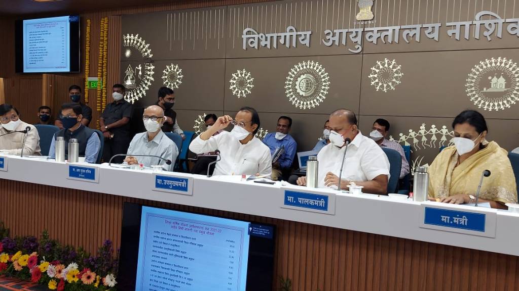 आज नाशिक येथील विभागीय आयुक्त कार्यालयात जिल्हा वार्षिक आरखड्या संदर्भात उपमुख्यमंत्री तथा अर्थ व नियोजन मंत्री अजित पवार यांनी बैठक घेतली. त्यावेळी या वाढीव प्रारूप आराखड्यास मंजुरी देण्यात आली. ग्रामविकास मंत्री तथा अहमदनगर जिल्ह्याचे पालकमंत्री हसन मुश्रीफ, राज्यमंत्री प्राजक्त तनपुरे, जिल्हापरिषदेच्या अध्यक्षा राजश्री घुले, यांच्यासह आमदार सर्वश्री संग्राम जगताप, डॉ. किरण लहामटे, आशुतोष काळे, जिल्हा परिषद उपाध्यक्ष प्रताप शेळके, नियोजन विभागाचे अपर मुख्य सचिव देवशिष चक्रवर्ती, उपसचिव वि. फ. वसावे, जिल्हाधिकारी डॉ. राजेन्द्र भोसले, जिल्हा पोलिस अधीक्षक मनोज पाटील, जिल्हा परिषदेचे मुख्य कार्यकारी अधिकारी ज्ञानेश शिंदे, जिल्हा नियोजन अधिकारी निलेश भदाणे यांच्यासह विविध कार्यान्वयीन यंत्रणांचे प्रमुख यावेळी उपस्थित होते.