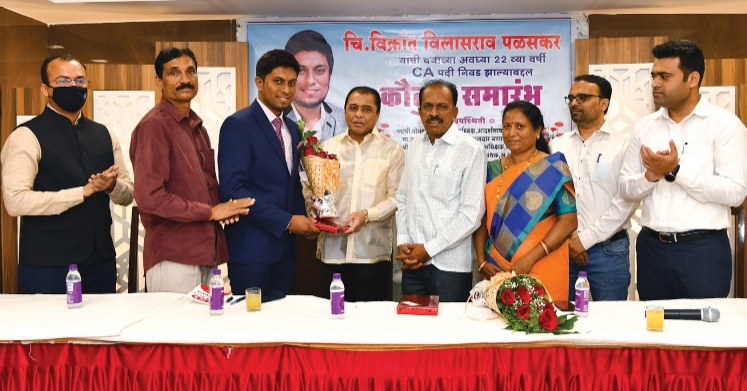 विक्रांत विलासराव पळसकर याने वयाच्या 22 व्या वर्षी सीए परीक्षेत पहिल्याच प्रयत्नात यश संपादन केल्याबद्दल कौटुंबिक मित्रपरिवाराच्यावतीने सत्कार करताना आ. अरुणकाका जगताप व पदाश्री पोपटराव पवार. समवेत जिल्हा उपनिबंधक दिग्विजय आहेर, अपर पोलिस अधीक्षक विक्रांत देशमुख, नगर रचनाकार पुणे श्रीकांत प्रभुणे, अनिल मुरकुटे, मिनाक्षी पळसकर, आदी उपस्थित होते.