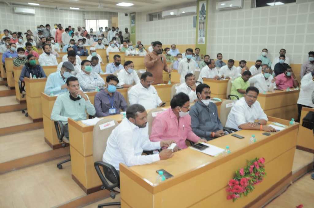 अहमदनगर महानगरपालिका आणि सर्व नगरपालिका आणि नगरपंचायती संदर्भात जिल्हाधिकारी तथा प्रभारी आयुक्त डॉ. भोसले यांनी सविस्तर सादरीकरण केले. अमृत अभियान अंतर्गत अहमदनगर पाणीपुरवठा योजना, पाणीपुरवठा संदर्भात अंतर्गत वितरण व्यवस्था, शहर भुयारी गटार योजना, सौर ऊर्जा प्रकल्प, शहरात हरित पट्टे विकसित करणे, घनकचरा व्यवस्थापन, आदींबाबतची सविस्तर माहिती त्यांनी दिली. यावेळी महापौर वाकळे तसेच महानगरपालिकेतील इतर पदाधिकारी यांनीही विकासकामांसंदर्भात विविध मुद्दे मांडले.