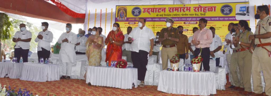 येथील पोलीस मुख्यालय मैदानावर आज जिल्हा नियोजन समितीच्या माध्यमातून मिळालेल्या २० वाहनांचा ताफ्याचा पोलीस दलात समावेश, श्री साई तीर्थक्षेत्र (पर्यटन) पोलीस मदत केंद्राचे ऑनलाईन उद्धाटन आणि आमदार रोहित पवार यांच्याकडून पोलीस दलाच्या कामकाजासाठी मिळालेली ई-सामग्री प्रदान कार्यक्रम पालकमंत्री श्री. मुश्रीफ यांच्या हस्ते झाला. त्यावेळी ते बोलत होते. जिल्हा परिषदेच्या अध्यक्षा राजश्री घुले, आमदार बबनराव पाचपुते, आमदार रोहित पवार, जिल्हाधिकारी डॉ. राजेन्द्र भोसले, जि.प. मुख्य कार्यकारी अधिकारी राजेंद्र क्षीरसागर, संगमनेरच्या नगराध्यक्षा दुर्गा तांबे, नाशिक परिक्षेत्राचे विशेष पोलीस महानिरीक्षक डॉ. प्रताप दिघावकर, जिल्हा पोलीस अधीक्षक मनोज पाटील, अपर पोलीस अधीक्षक डॉ. दीपाली काळे आणि सौरभ अग्रवाल यांच्यासह विविध पदाधिकारी यांची व्यासपीठावर उपस्थिती होती.
