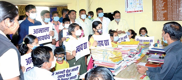 अहमदनगर ः कोरोनाच्या पार्श्वभूमीवर टाळेबंदीत शाळा बंद असून देखील पालकांकडून अवाजवी शुल्काची मागणी, शुल्क न भरल्यास विद्यार्थ्यांचे ऑलनाईन शिक्षण बंद केल्याबद्दल, तर शिक्षणाधिकारी यांनी नेमलेल्या त्रिस्तरीय चौकशी समितीस सहा महिने उलटून देखील वडगाव गुप्ता येथील गॅलॅक्सी नॅशनल स्कूलवर कारवाई होत नसल्याच्या निषेधार्थ शाळेतील पालक व विद्यार्थ्यांनी जि.प. प्राथमिक शिक्षणाधिकारी यांच्या दालनात ठिय्या आंदोलन केले. जिल्हा परिषदेच्या प्रवेशद्वारात सदर शाळेवर कारवाई होण्यासाठी पालकांनी जोरदार निदर्शने केली. आंम्हाला शिकायचय, जे देत नाही त्याची फी घेऊ नका, न्याय द्या असे फलक घेऊन विद्यार्थी देखील आंदोलनात सहभागी झाले होते.
