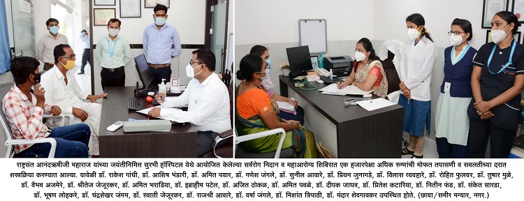 या शिबिरांतर्गत रुग्णांना कॅन्सर, प्लास्टिक सर्जरी, वंध्यत्व निवारण, दमा, मधुमेह, हृदयरोग, अस्थिरोग, स्त्रीरोग, मुळव्याध, भगंदर, बालआरोग्य, लिव्हर व पोटविकार आदी आजारांवरील तज्ज्ञ डॉक्टरांनी एकूण 1 हजार 81 रुग्णांची मोफत तपासणी केली. ज्या रुग्णांवर शस्त्रक्रिया करणे आवश्यक आहे व इतर तपासण्या आवश्यक आहेत, अशा रुग्णांना अतिशय सवलतीच्या दरात शस्त्रक्रिया व इतर उपचार करण्यात आले.