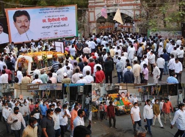 अहमदनगर : माजी केंद्रीय मंत्री दिलीप गांधी यांचं काल (दि.१७ रोजी ) पहाटे दिल्लीतील मेदांता रुग्णालयात कोरोनाने निधन झाले . त्यानंतर त्यांचे पार्थिव आज दुपारी ४ वाजता नगरला त्यांच्या निवास स्थानी आणण्यात आले. तेथून त्यांची अंतयात्रा काढण्यात आली सायंकाळी ६ च्या दरम्यान नगरच्या अमरधाम येथे त्यांच्या पार्थिवावर दिलीप गांधी अमर रहे च्या घोषणात, भावपूर्ण वातावरणात अंत्यसंस्कार करण्यात आले.