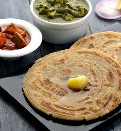 स्टेप 2 – आटे से रोटी बेलें. कुछ पिघले हुए मक्खन के साथ ऊपरी तरफ कोट करें. इस पर कुछ सूखा आटा छिड़कें.