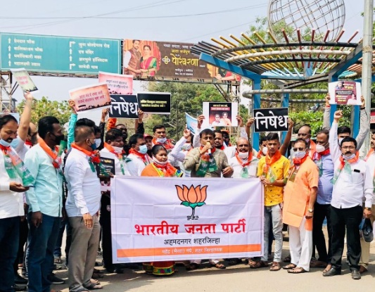 शहर जिल्हा भाजपाच्यावतीने प्रोफेसर कॉलनी चौकात आघाडी सरकारच्या विरोधात तीव्र घोषणाबाजी करुन निदर्शने करण्यात आली. याप्रसंगी शहर जिल्हाध्यक्ष भैय्या गंधे, महापौर बाबासाहेब वाकळे, उपमहापौर मालनताई ढोणे, अॅड.अभय आगरकर, संघटन सरचिटणीस विवेक नाईक, सरचिटणीस तुषार पोटे, महेश नामदे, नगरसेवक उदय कराळे, विलास ताठे, रविंद्र बारस्कर, शुभांगी साठे, सभागृहनेते मनोज दुलम, प्रा.भानुदास बेरड, उपाध्यक्ष नरेंद्र कुलकर्णी, सचिन पारखी, शिवाजी दहिंडे, महिला अध्यक्षा अंजली वल्लाकट्टी, संगीता खरमाळे, मंडल अध्यक्ष वसंत राठोड, सतिश शिंदे, अजय चितळे, महेश तवले, ज्ञानेश्वर काळे, बाळासाहेब गायकवाड आदि उपस्थित होते.