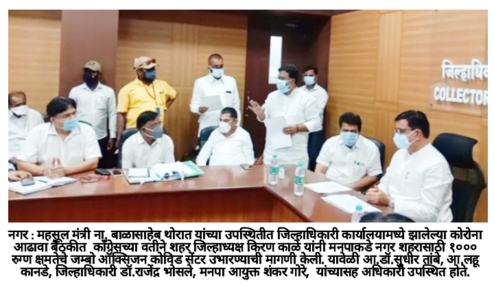 काँग्रेसची अहमदनगर शहरासाठी १००० रुग्ण क्षमतेचे जम्बो ऑक्सिजन कोविड सेंटर उभारण्याची मनपाकडे महसूल मंत्र्यांच्या उपस्थितीत मागणी ; ना.बाळासाहेब थोरात यांचे मनपा आयुक्तांना चाचपणी करण्याचे आदेश