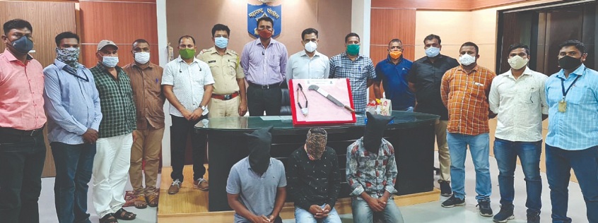 पकडलेल्या दोन्ही चोरटयांना पथकातील अधिकारी व अमंलदार यांची ओळख सांगुन त्यांना त्याचे नाव पत्ता विचारले असता त्यांनी त्यांचे नावे (1) स्वप्नील उर्फ आदित्य अशोक पाखरे वय 25 रा. नागरदेवळे ता. जि. अहमदनगर (2) किशोर उर्फ ईश्वर दिलीप शिंदे वय 24 रा. देहरे ता. जि. अहमदनगर असे असल्याचे सांगीतले तसेच पळुन गेलेल्या साथीदारा बाबत त्यांचेकडे चौकशी केली असता त्यांनी त्याचे नाव (3) आकाश पांडुरंग शिंदे रा. विळद ता. जि. अहमदनगर असे असल्याचे सांगीतले. त्यांनतर ताब्यात घेतलेल्या आरोपीची अंगझडती घेतली असता त्यांचे अंगझडती व कब्जामधुन 300/- रु. किंमतीची लोखंडी कत्ती, एक गिलवर तसेच गुन्हयात वापरलेली 55,000/- रु. किमतीची टीव्हीएस कंपनीची आपाची मोटार सायकल मिळुन आल्याने ते जागीच जप्त करण्यात आले.