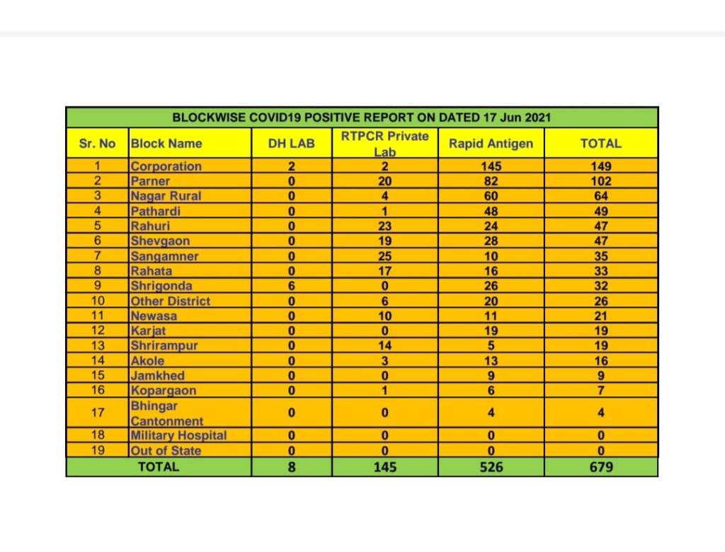 जिल्हा रुग्णालयाच्या कोरोना टेस्ट लॅब मध्ये बाधीत आढळून आलेल्या रुग्णामध्ये मनपा ०२ आणि श्रीगोंदा ०६ अशा रुग्णांचा समावेश आहे.