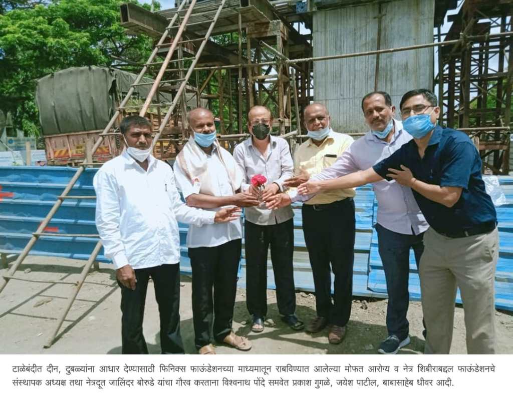 यावेळी प्रकाश गुगळे, जयेश पाटील, बाबासाहेब धीवर आदी उपस्थित होते.विश्वनाथ पोंदे म्हणाले की, दीन, दुबळ्यांना संकटकाळात फिनिक्स फाऊंडेशनने आधार देण्याचे काम केले. अनेक दृष्टीहिनांना नवदृष्टी देण्याचे काम शिबीराच्या माध्यमातून करुन वंचितांच्या जीवन प्रकाशमय केले. तर गरजू रुग्णांना आरोग्य शिबीर निशुल्क उपलब्ध करुन दिले.