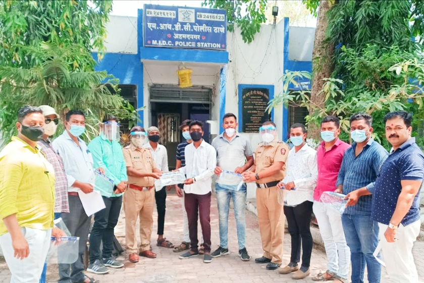 अहमदनगर (प्रतिनिधी) : कोरानाचे संकट अजून संपलेले नाही. या संकट काळामध्ये पोलिसांनी जनतेची केलेली सेवा ही कौतुकास पात्र आहे. याच सामाजिक जाणिवेतून नगर तालुका विद्यार्थी काँग्रेसच्या वतीने तालुकाध्यक्ष सुजित जगताप यांच्या संकल्पनेतून युवक – विद्यार्थी काँग्रेसचे जिल्हा समन्वयक तथा शहर काँग्रेसचे जिल्हाध्यक्ष किरणभाऊ काळे यांच्या नेतृत्वाखाली एमआयडीसी पोलिस स्टेशनमधील पोलिसांना काँग्रेसचे राष्ट्रीय नेते खा. राहुल गांधी यांच्या वाढदिवसानिमित्त फेसशील्डचे मोफत वाटप करण्यात आले.